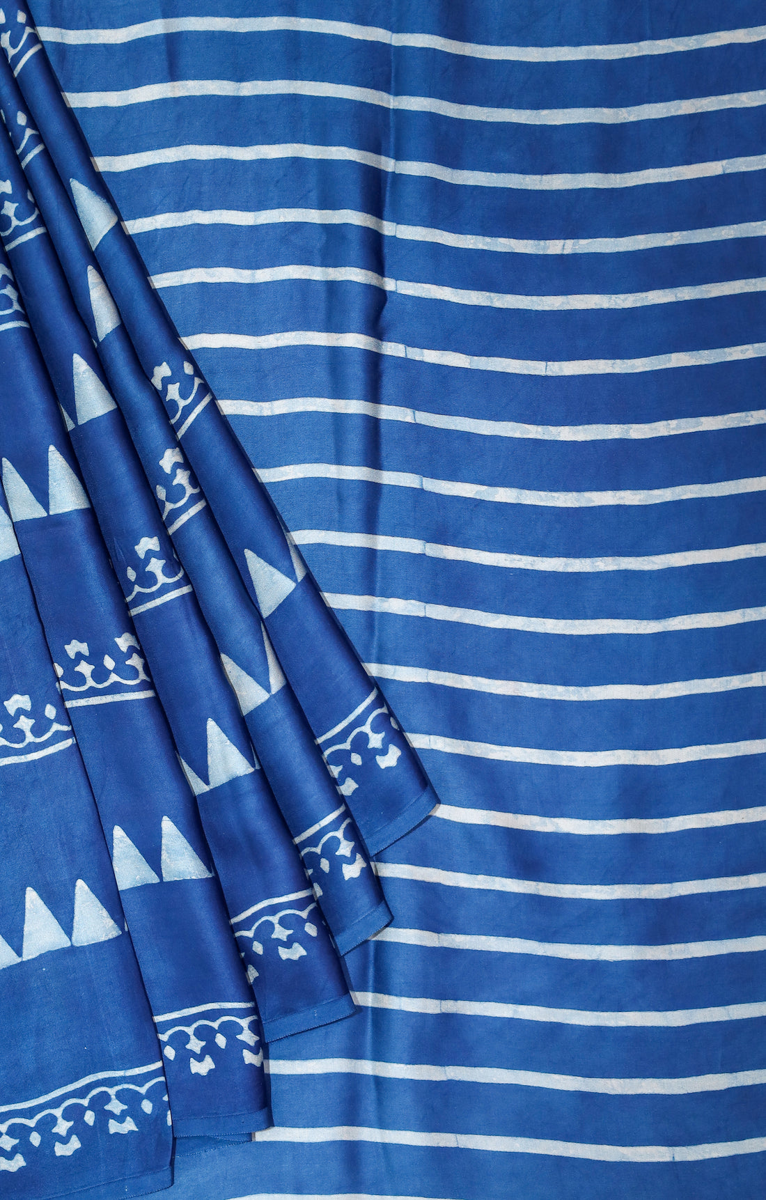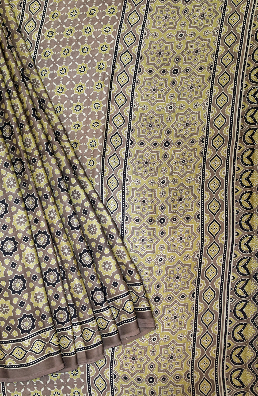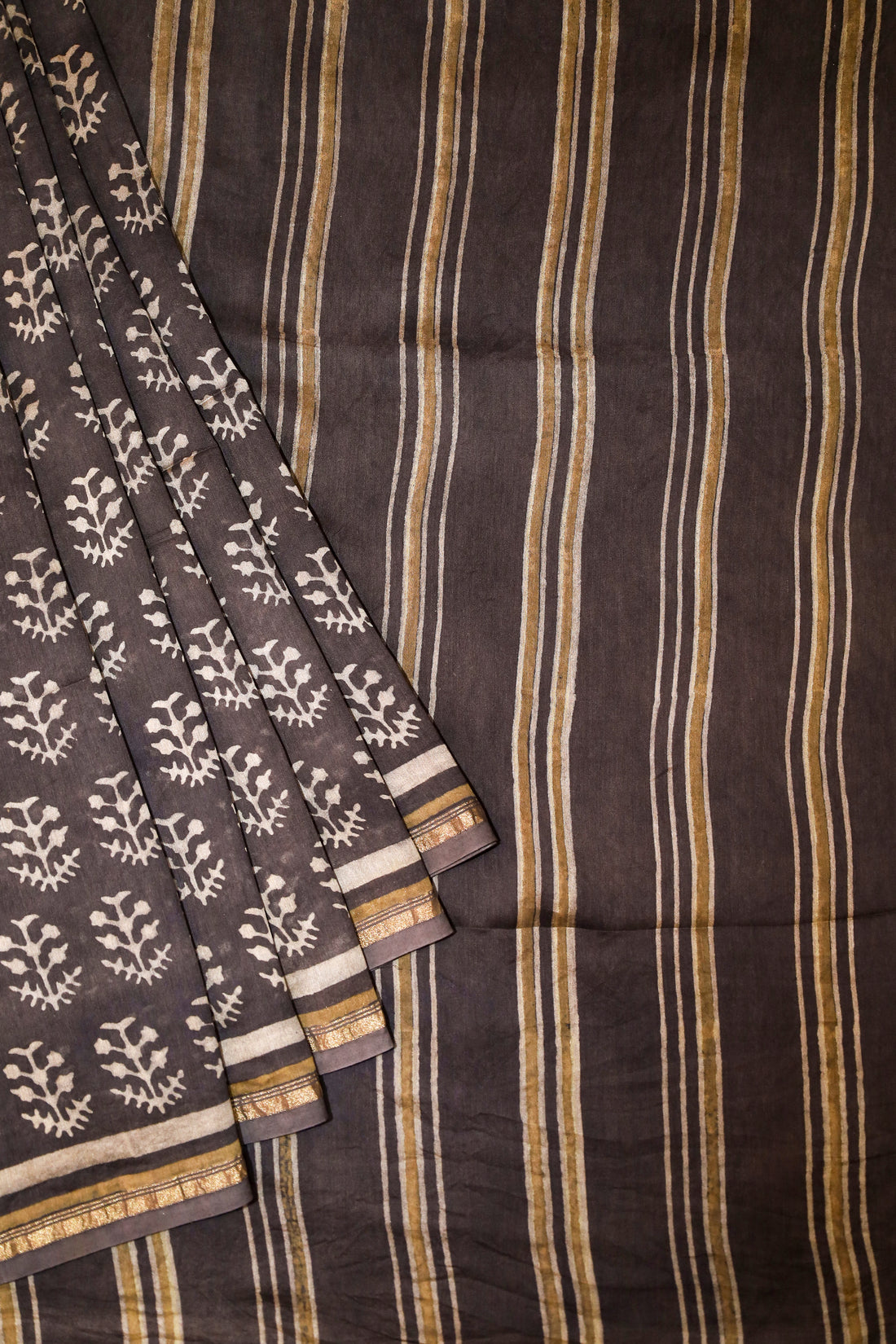 Ajrakh block printed Maheshwari Silk Cotton Saree # 12