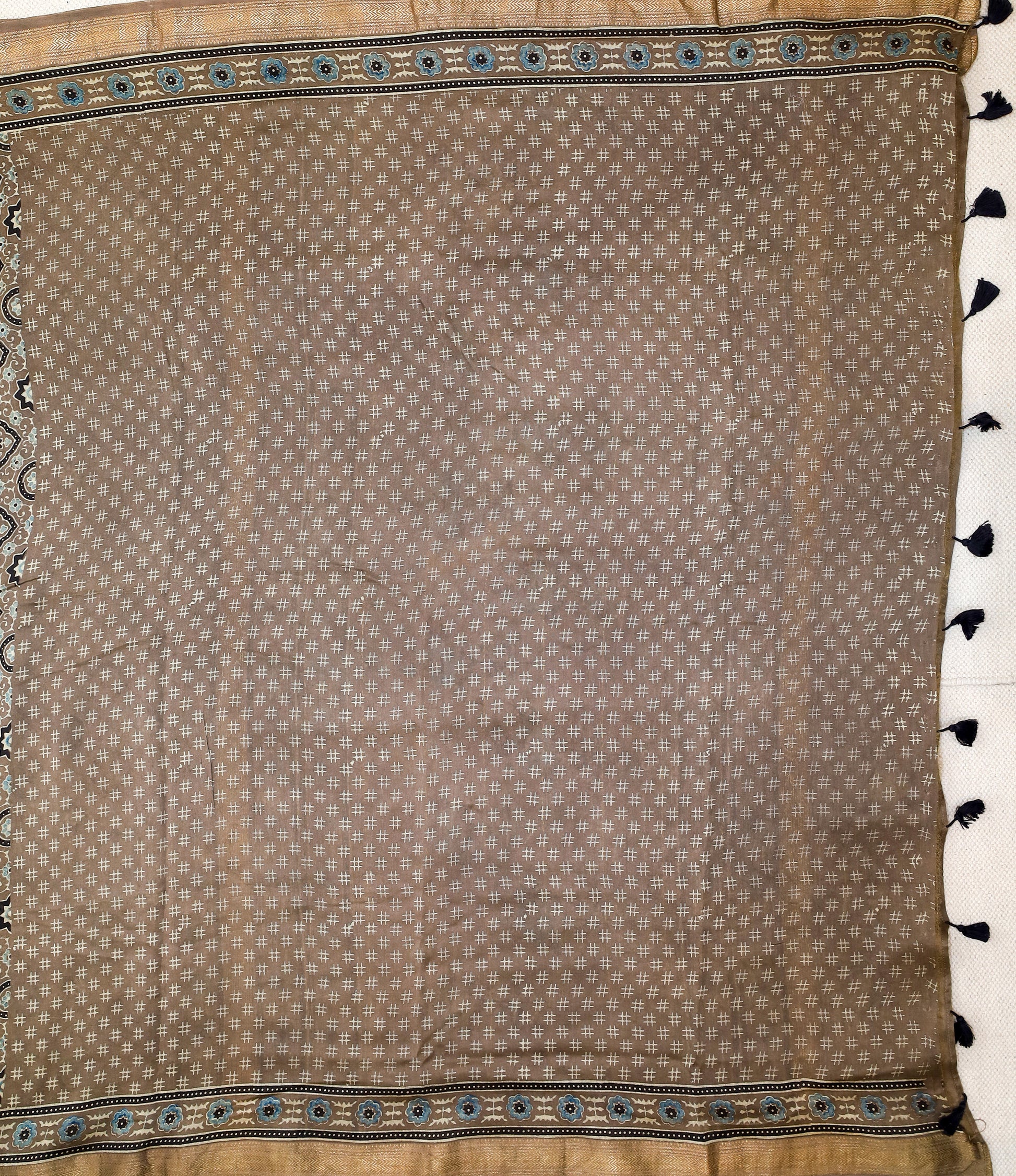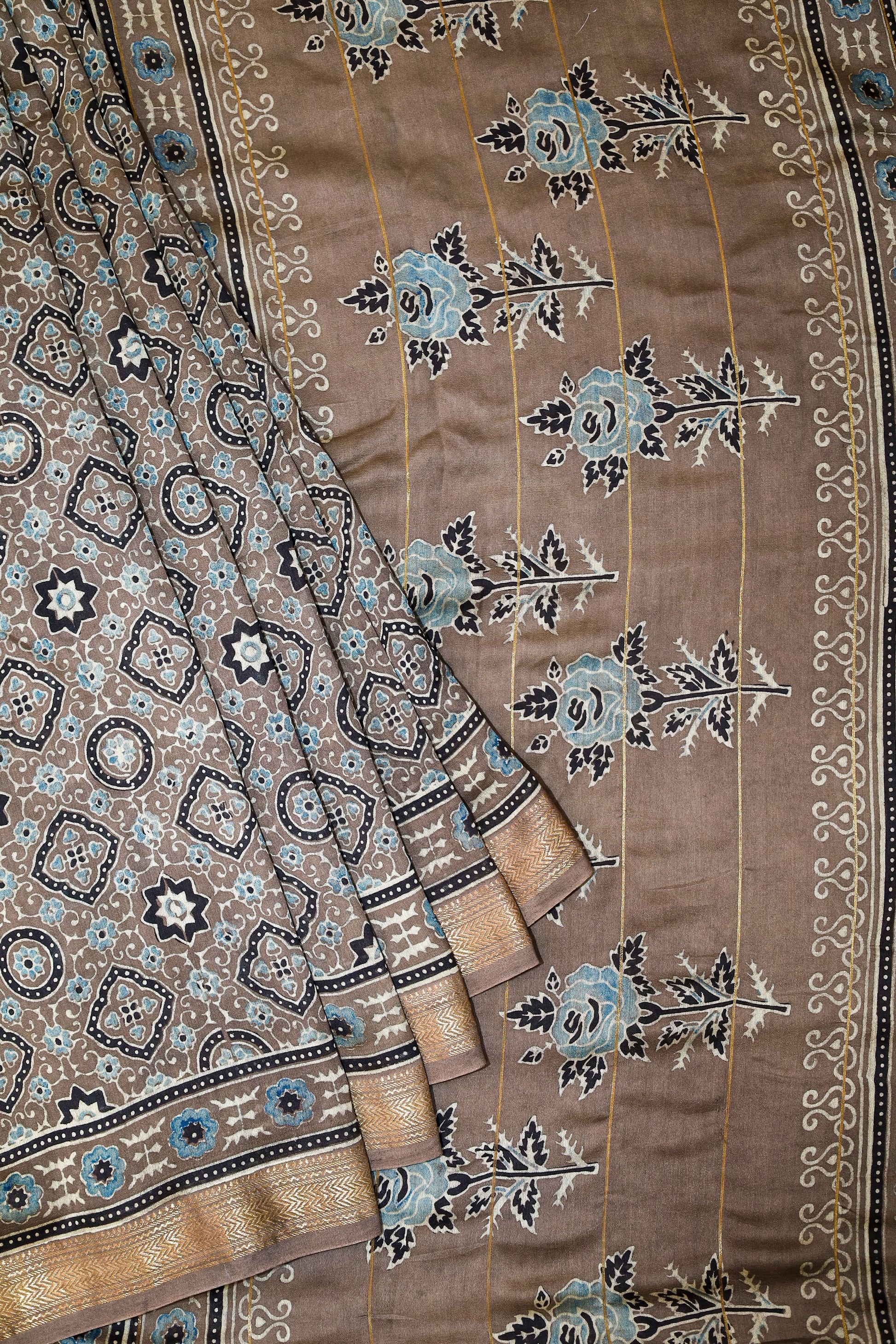 Ajrakh block printed Maheshwari Silk Cotton Saree