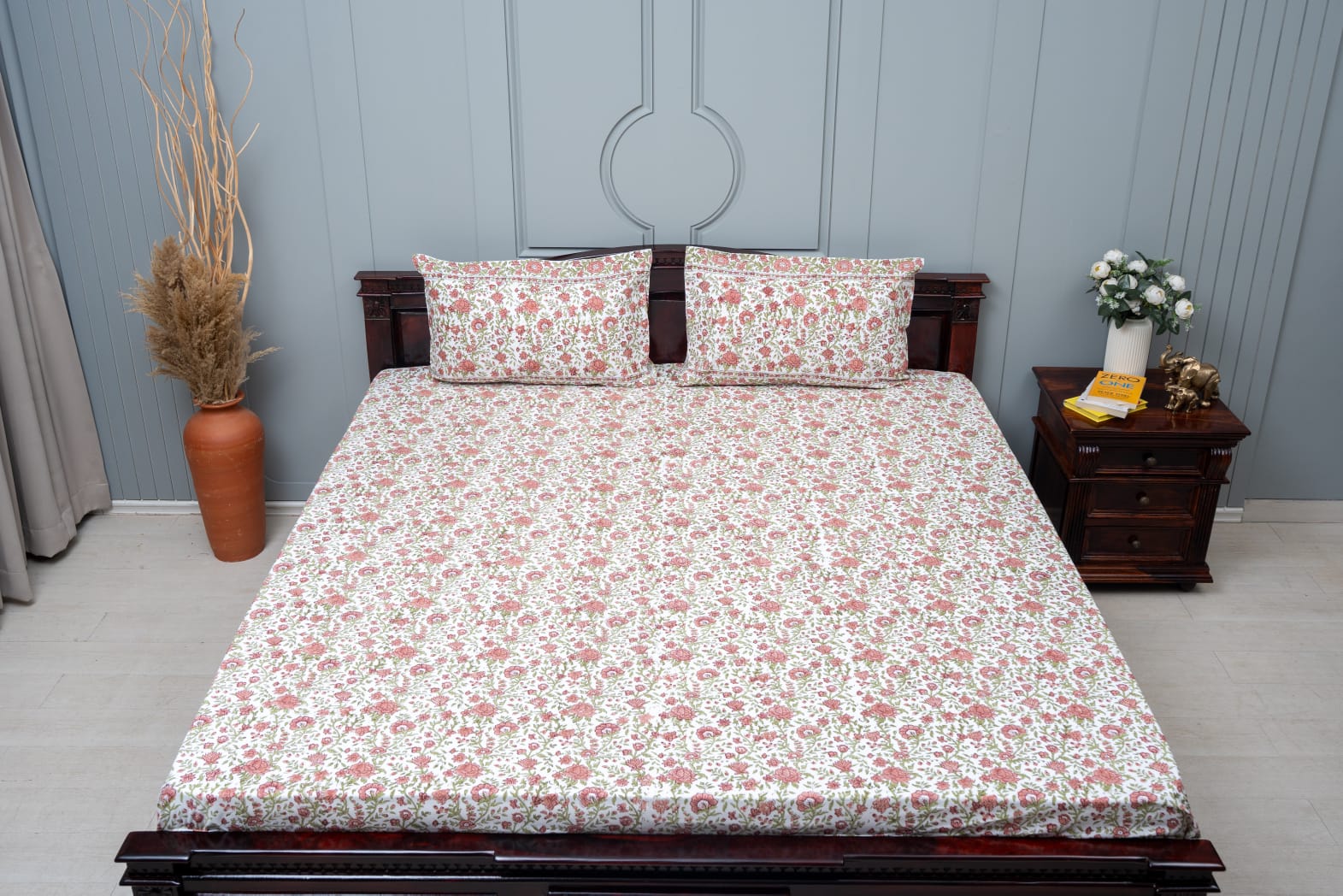Elevate your bedroom with our hand-block printed bedsheet set, a luxurious blend of style and sustainability. Crafted from 100% organic cotton in a lush 300TC percale weave, this bedsheet is a masterpiece of comfort and design.