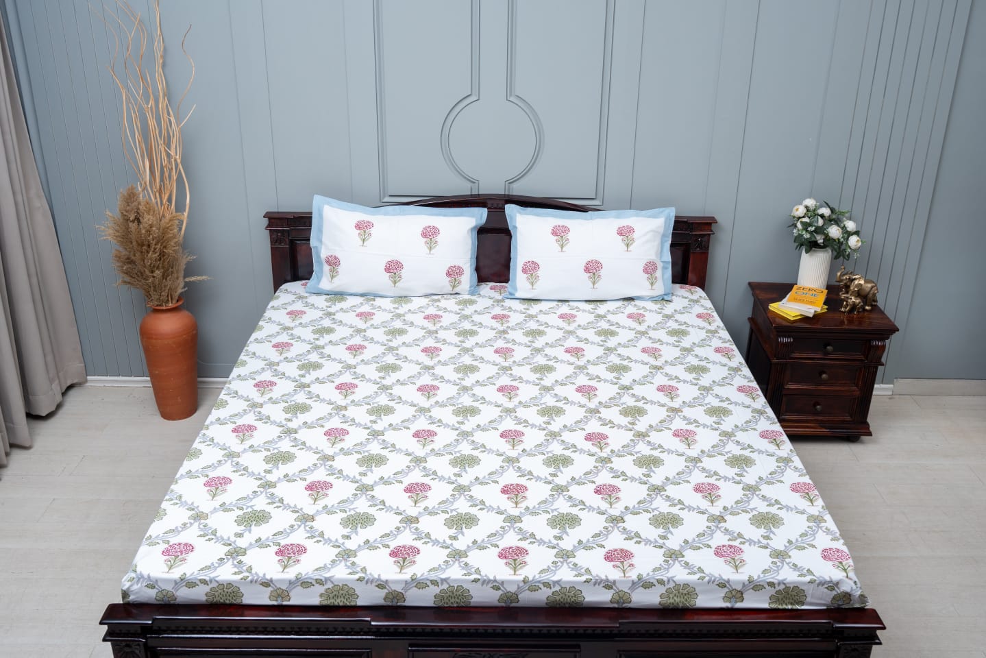 Elevate your bedroom with our hand-block printed bedsheet set, a luxurious blend of style and sustainability. Crafted from 100% organic cotton in a lush 300TC percale weave, this bedsheet is a masterpiece of comfort and design.