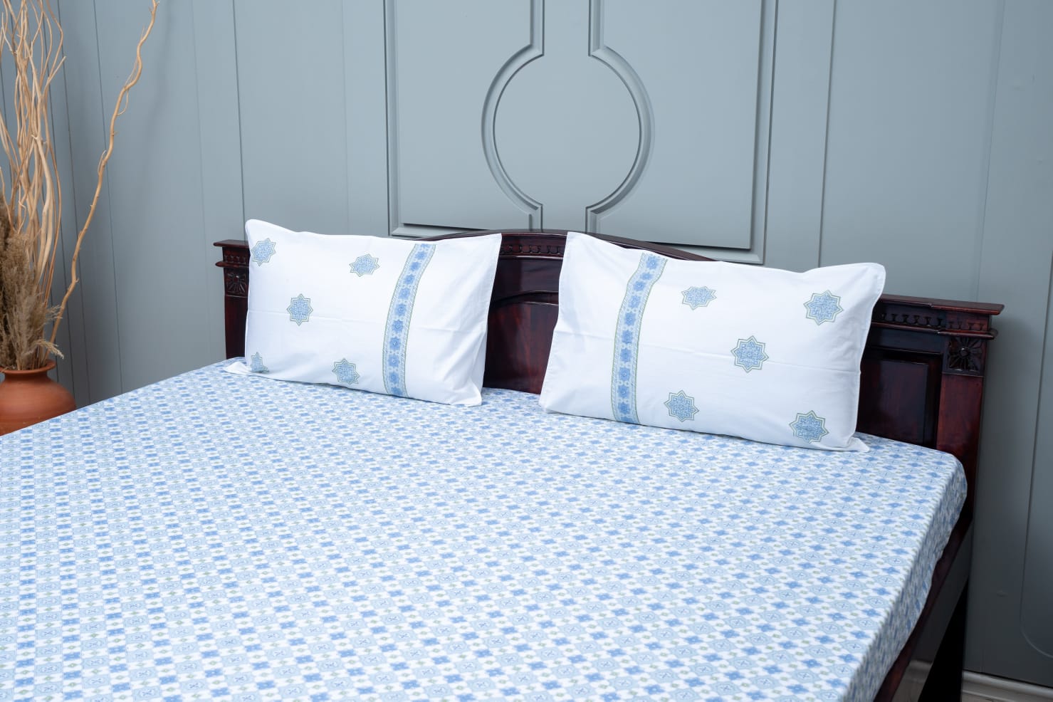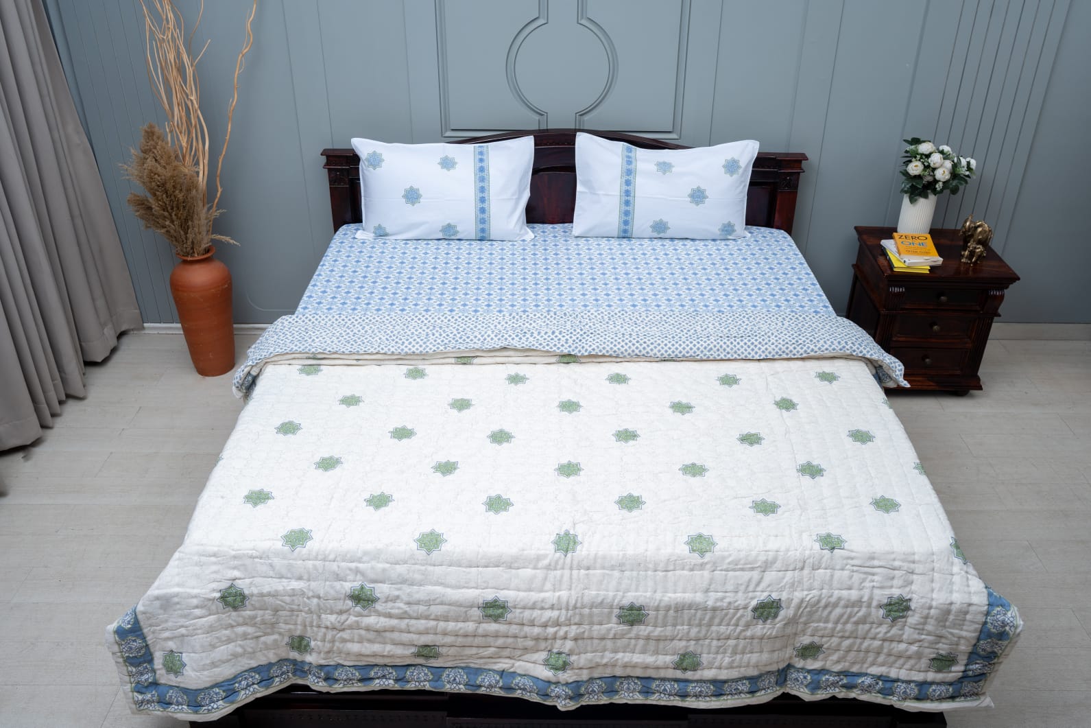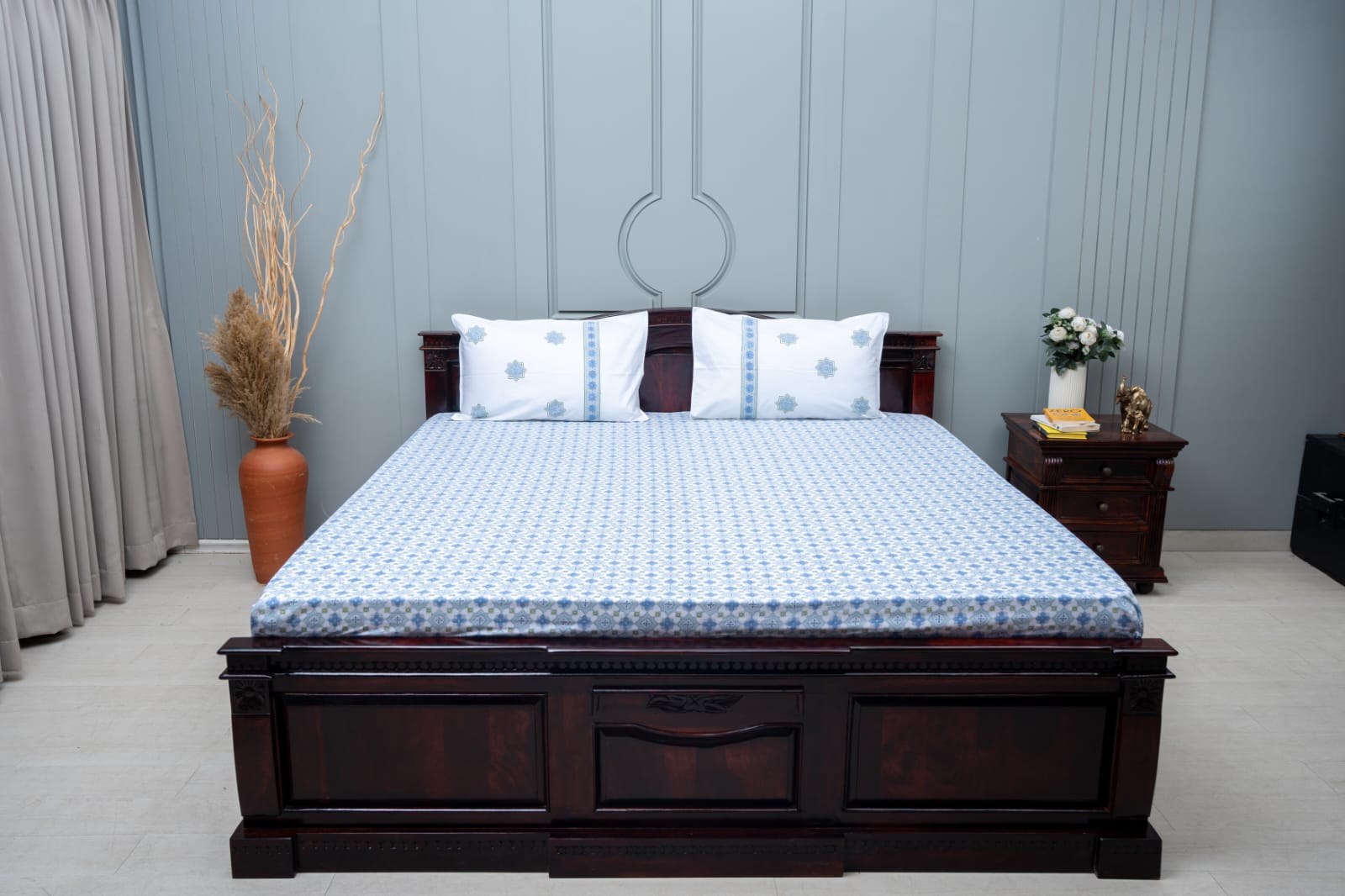 Wrap yourself in artistry and comfort with our hand-block printed premium cotton bedsheet. Every night becomes a canvas of beauty with intricate designs and the soft embrace of cotton, adding a touch of elegance and craftsmanship to your lovely abode
