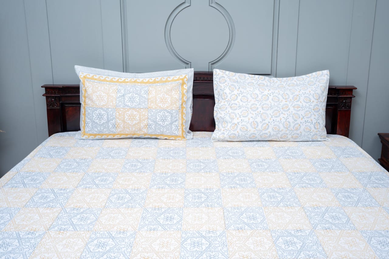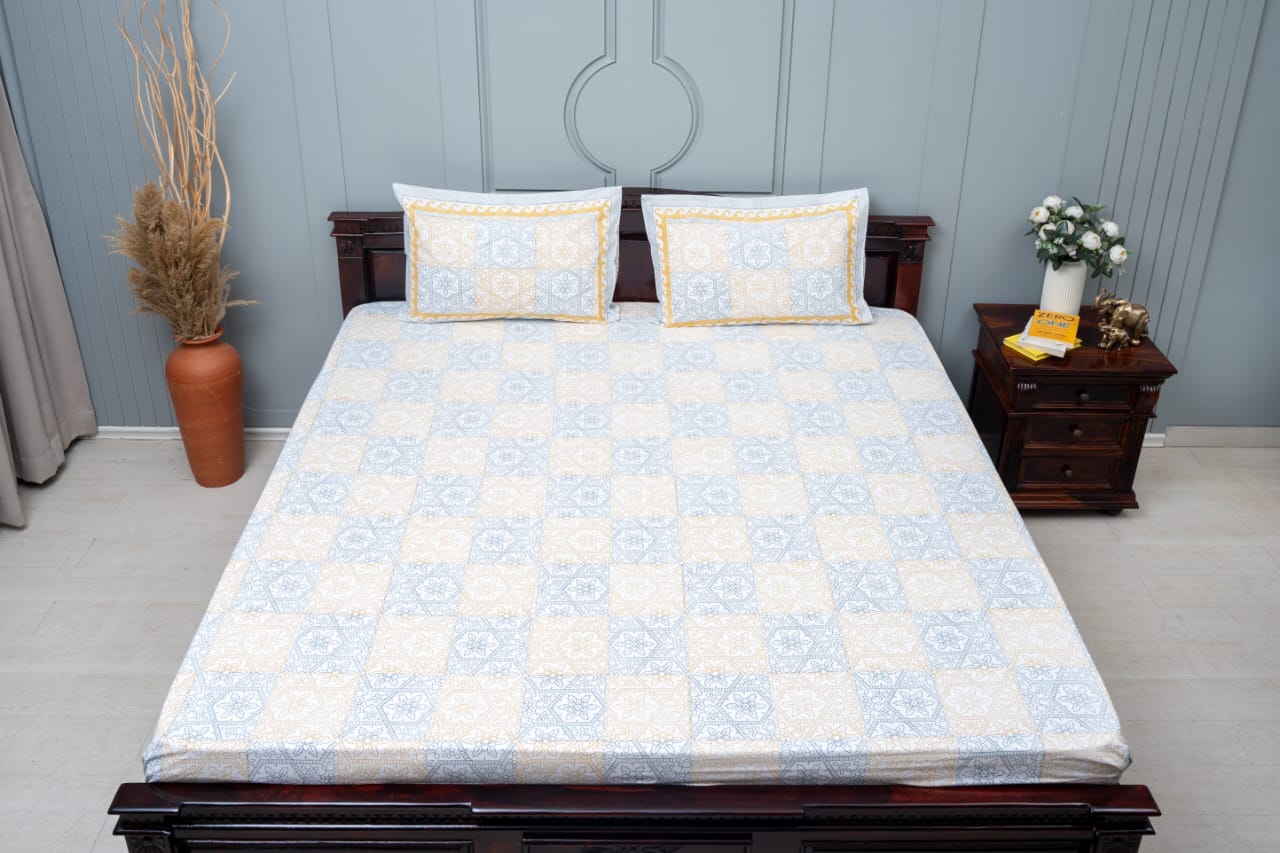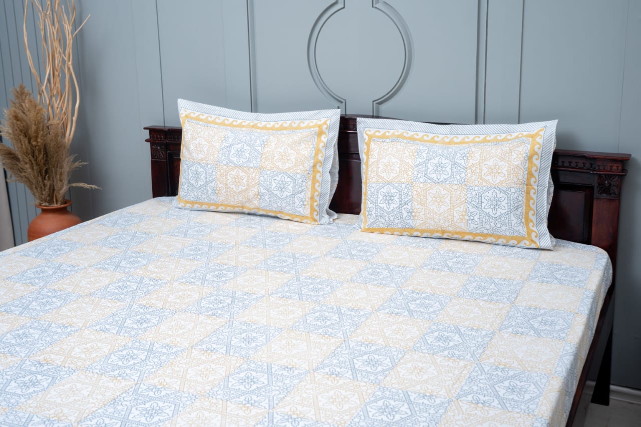 Wrap yourself in artistry and comfort with our hand-block printed premium cotton bedsheet. Every night becomes a canvas of beauty with intricate designs and the soft embrace of cotton, adding a touch of elegance and craftsmanship to your lovely abode